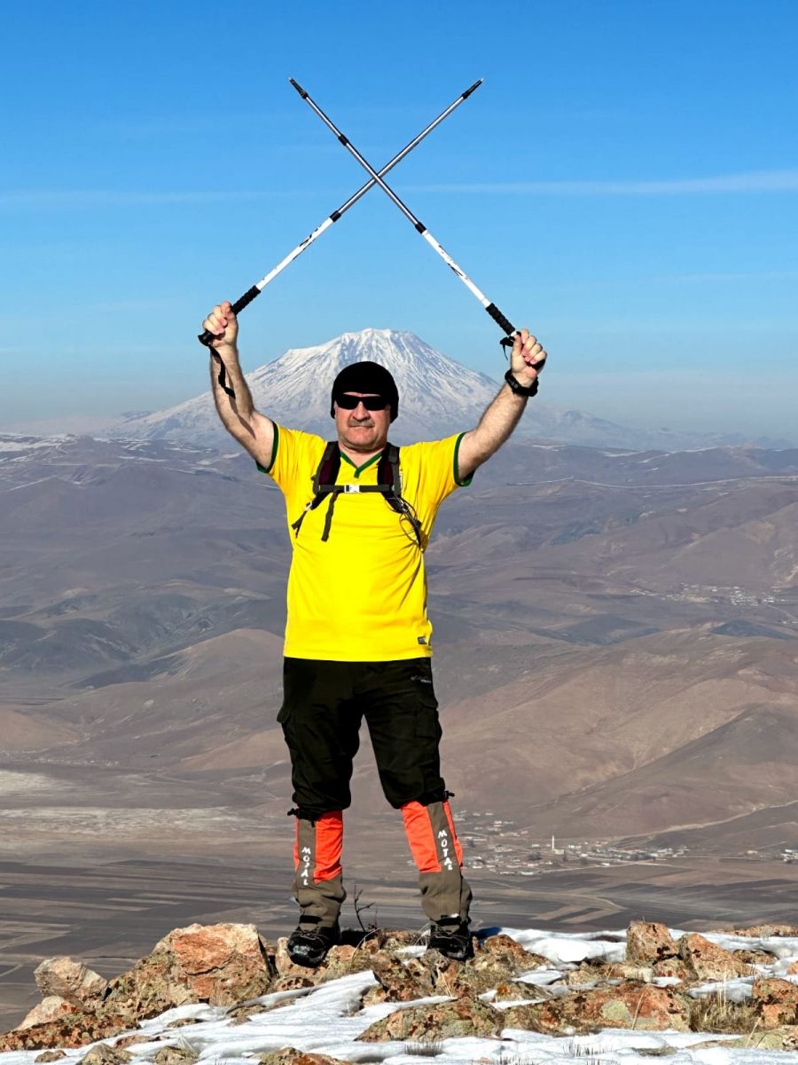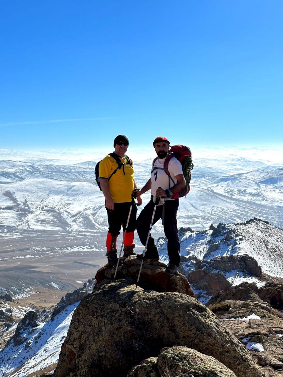 Çaldıran ilçesindeki 2733 rakımlı Alikelle Dağı’na tırmanan dağcılar, ilçenin çok az bir bölümünü kar görürken, büyük bir kısmını ise karsız gördü. Dağcılar gördükleri bu manzaraya karşı hayrete düşerken, tırmanışa ise kolsuz tişörtle devam etti.