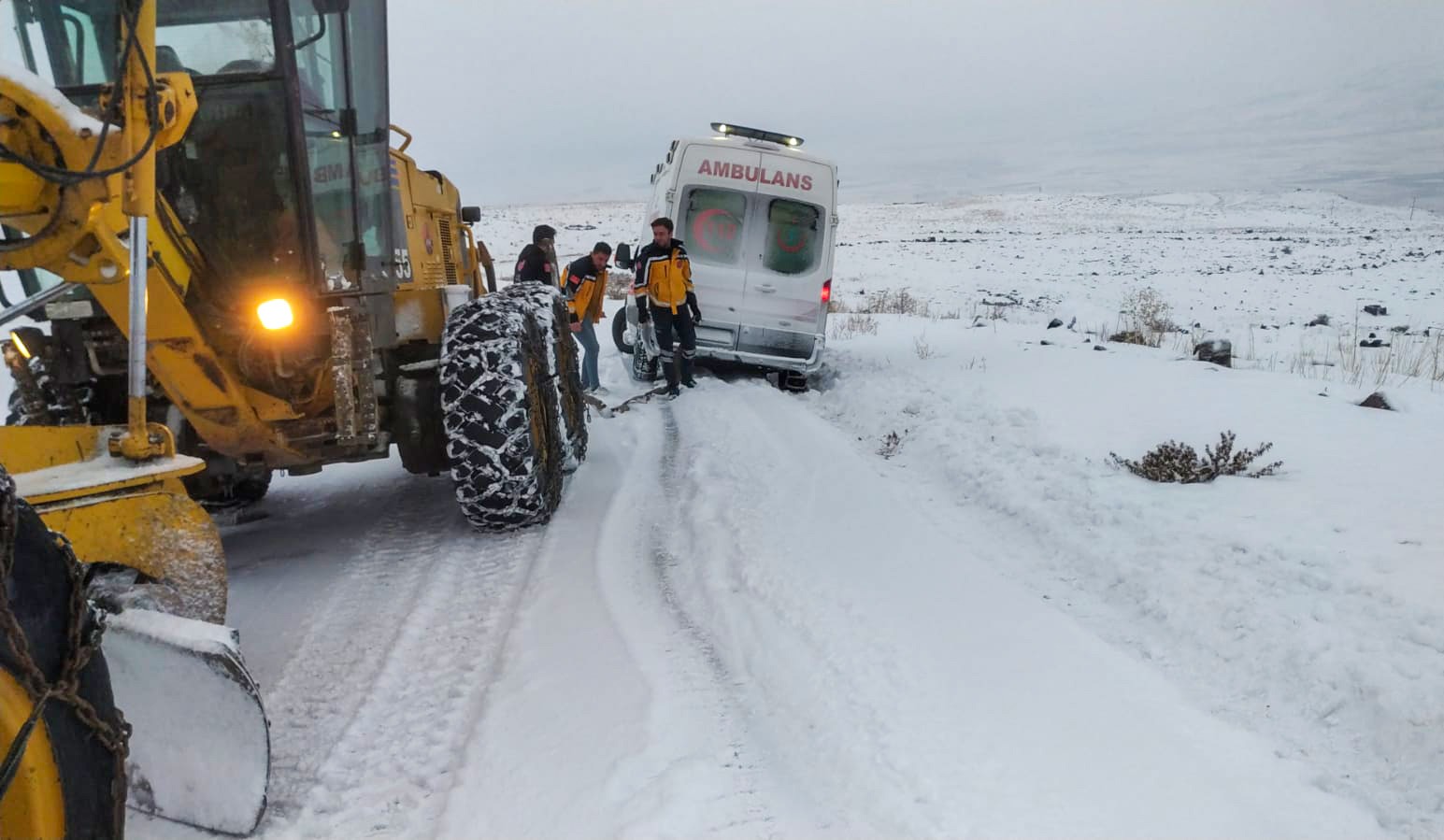 Ayrıca Muradiye ilçesi Gültepe Mahallesi'nde hastayı aldıktan sonra dönüşe geçen ambulans kara saplandı. Sağlık görevlilerinin yardım talebi üzerine bölgeye giden Van Büyükşehir Belediyesi karla mücadele ekipleri, zincir bağladıkları ambulansı, iş makinesinin yardımıyla kurtardı.