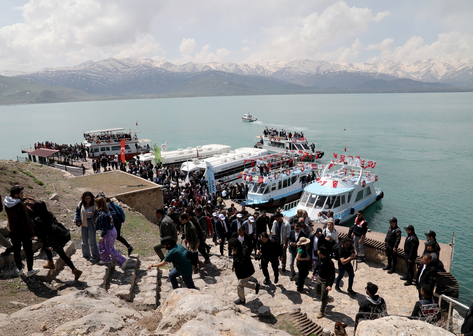 VAN SON HABER - Van Valiliği himayesinde, Büyükşehir Belediyesi ile Kültür ve Turizm İl Müdürlüğü koordinasyonunda Gevaş ilçesinde kortej yürüyüşü ile başlayan festival, Akdamar Adası’ndaki renkli görüntülerle devam etti. Türk bayraklarıyla süslenen tekne ve feribotlarla adaya ücretsiz olarak taşınan ziyaretçiler, buradaki büyüleyici manzara eşliğinde fotoğraf çekerek festivalin tadını çıkarttı.
