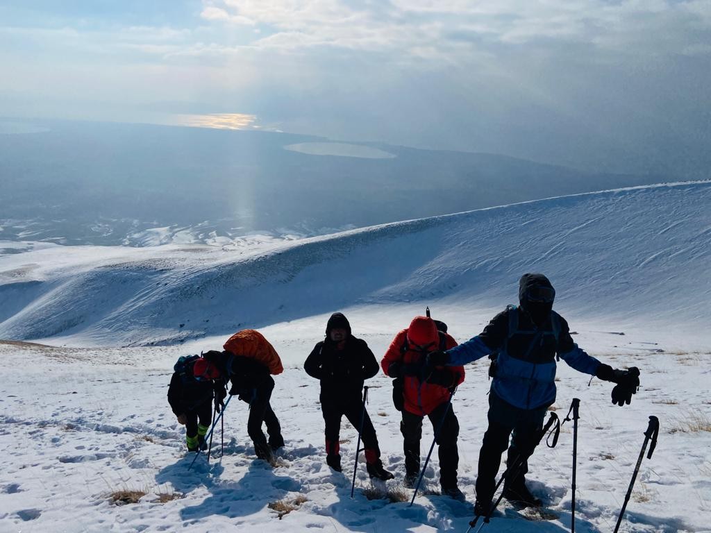 VAN SON HABER - Van Gölü Havzası’nı tanıtmak ve doğa bilincini kazandırmak üzere etkinlikler düzenleyen Rota Doğa Sporları Kulübü, 2023 yılının üçüncü kış programını gerçekleştirdi. Kış programı çerçevesinde 6 dağcı, zorlu Süphan Dağı tırmanışı yaptı.