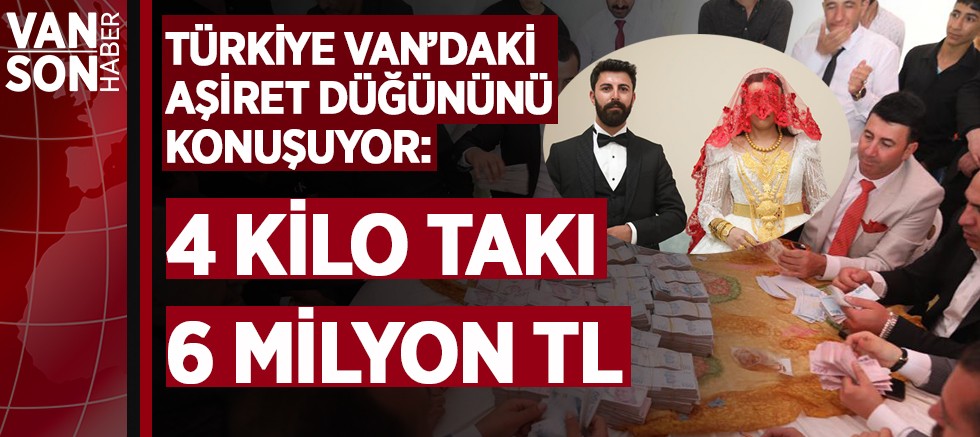 100 küçükbaş hayvanın kesildiği düğünde, yemek ikramının ardından geçilen takı töreni 5 saat sürdü. Damada 6 milyon TL nakit para, geline ise 4 kilo altın takılan düğün, son yılların en çok takı takılan düğünü olarak hafızalara kazındı.,