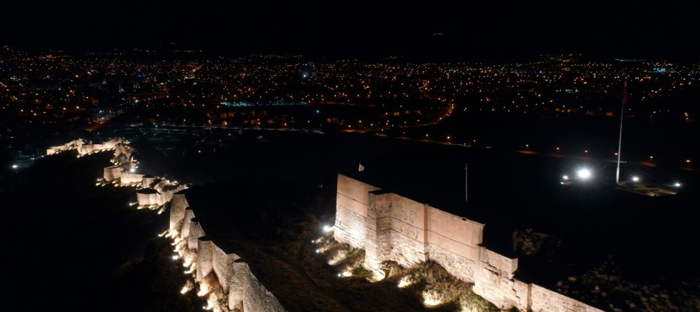 UNESCO Dünya Miras Geçici Listesi'nde bulunan Van’ın en önemli tarihi varlıklarından Van Kalesi yapılan ışıklandırma ile yeni bir kimliğe büründü.