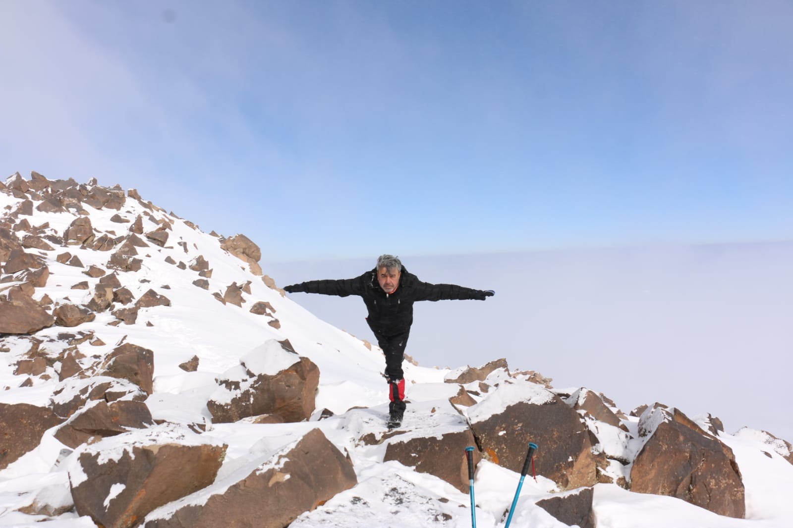 Yaklaşık 12 saate zirveye tırmanan dağcılar, geçtiğimiz yıllara oranla Süphan Dağı’nda da kar yağışının az olduğunu fark etti. Öte yandan zirvede Cezmi Fazla isimli dağcı ise 13 yaşına giren kızı Elvin’in yaş gününü kutladı.